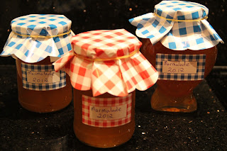 So after reading a few posts I settled on a recipe from Nessa's Family Kitchen. It sounded really good, easy and the words 'it set perfectly' edged it past the post. Unfortunately I couldn't find my grandmother's recipe but I will be rooting it out for next year's batch - yes there will be more marmalade in the future!!