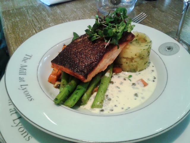Salmon, Crush Potato, Wild Mushrooms, Puy Lentils and Champagne Cream |