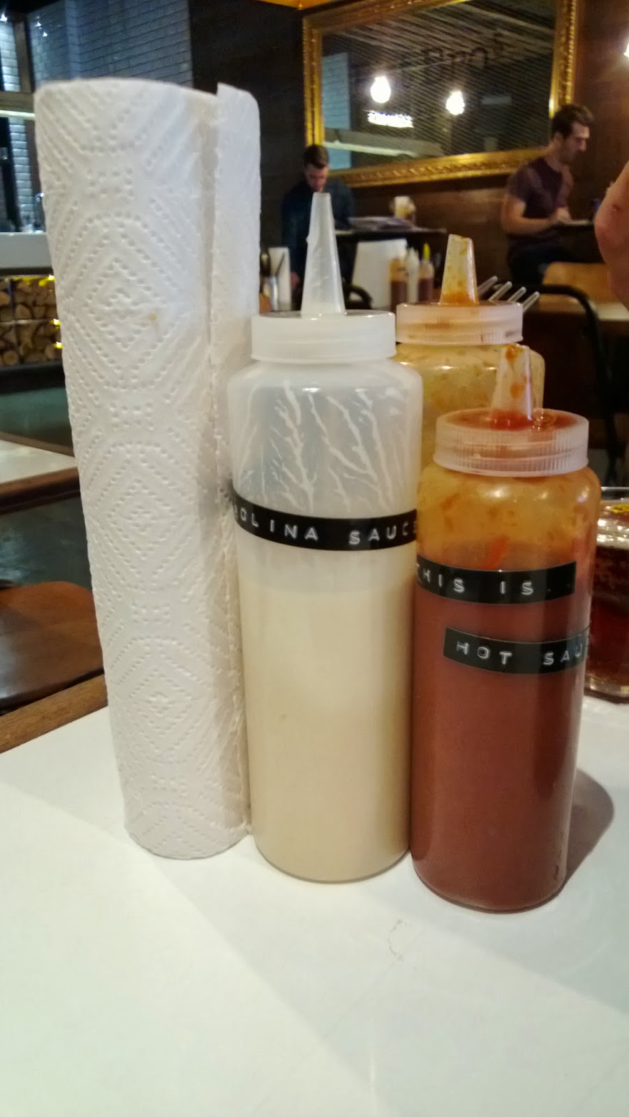 The fries still had their skins and were wonderfully crispy as were the onion rings while the bone marrow mash was something I could have eaten a vat of. Yes it may not have been totally lump free but it was delicious. The boyfriend scoffed down the coleslaw though I have to admit I did miss a bowl of potato salad as a side. The sauces were good though the BBQ sauce was a little runny for me. I preferred the Carolina sauce which had a good bang of garlic off it and the boyfriend took a fancy to the hot sauce which wasn't too hot at all.